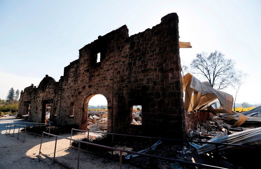 A stone facade is all that remains standing at the Soda Rock Winery, which was destroyed by the Kincade fire. LUIS SINCO/LOS ANGELES TIMES